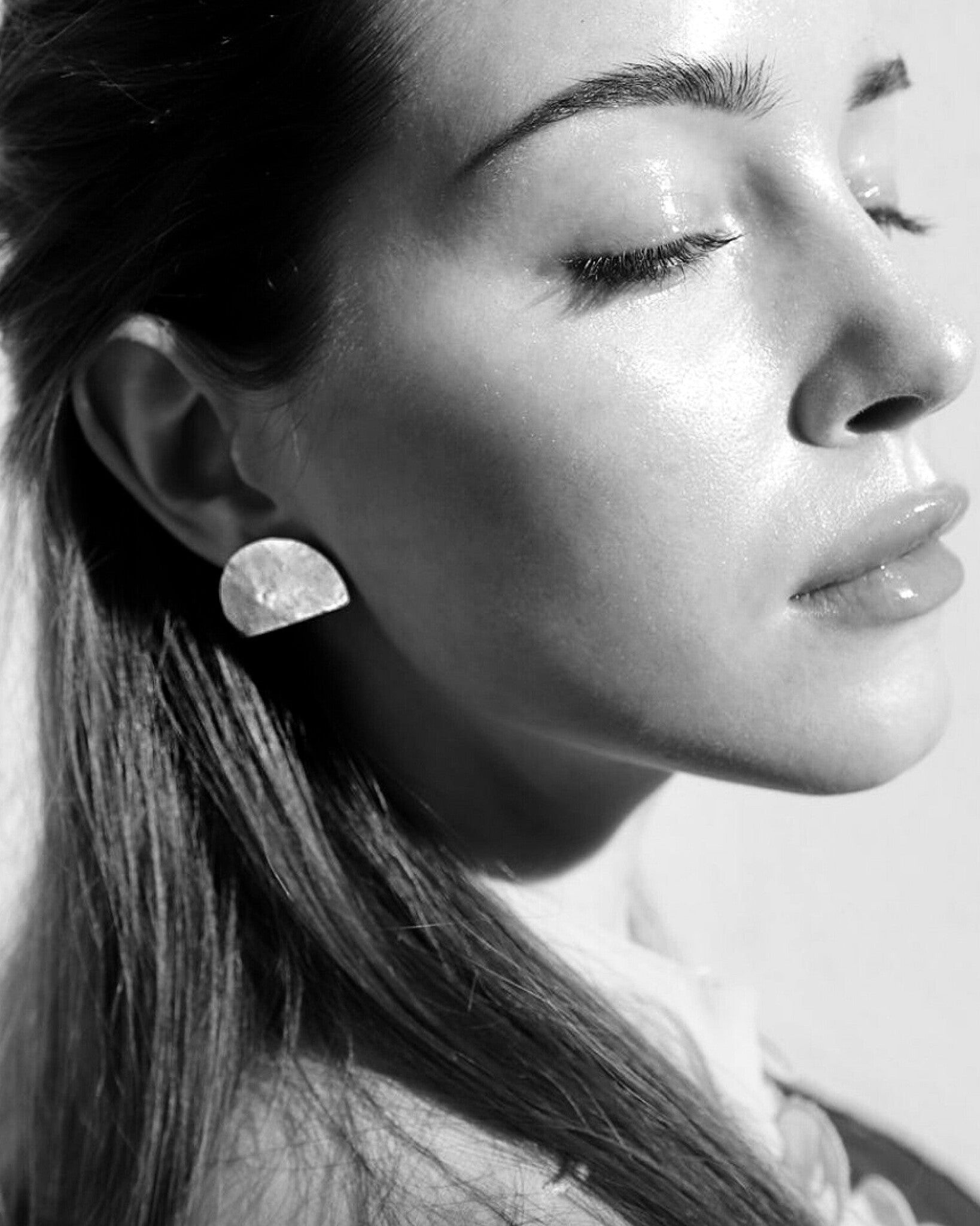 Jednostavne i efektne naušnice u obliku polumjeseca. Iglica je od medicinskog čelika, a svi ostali elementi su od mjedi. Ne sadrže nikal.