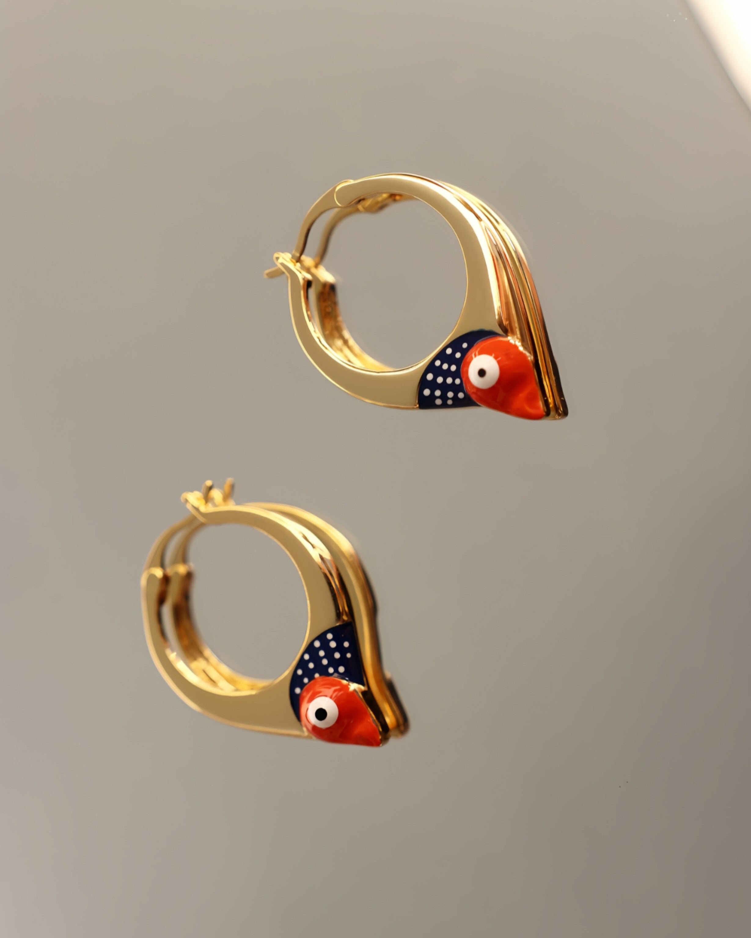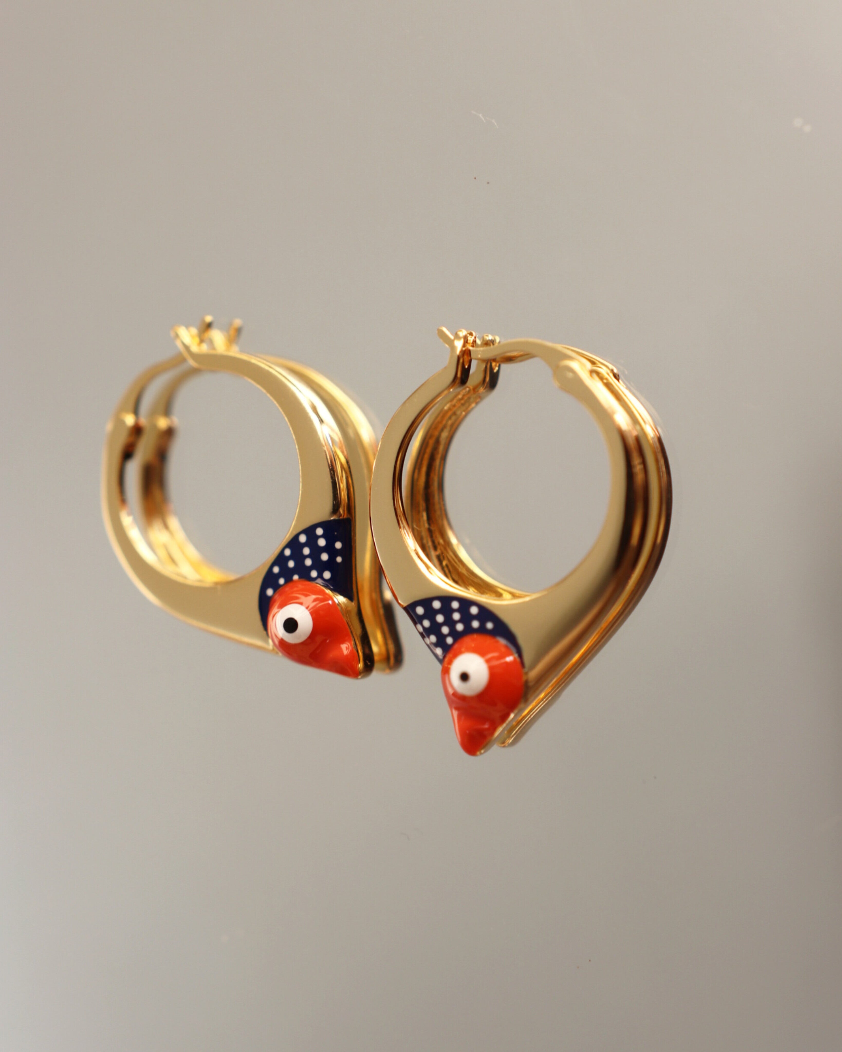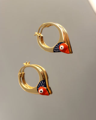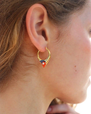 Naušnice u tipu obruča čiji je dizajn obogaćen aplikacijom emajla u bojama naše plave ribe - srdele. Naušnice su izrađene od mjedi s 18 karatnom pozlatom i ručno nanesenim završnim slojem emajlirane boje. Ne sadrže nikal i vrlo su lagane za nošenje. Zbog pozlate nije potrebno polirati. Dio su kolekcije 'Stylish heritage'